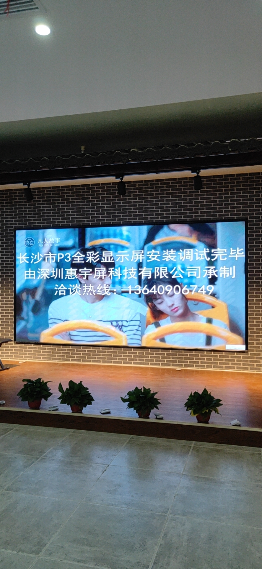 長沙茶館LED顯示屏-p3全彩屏安裝完成